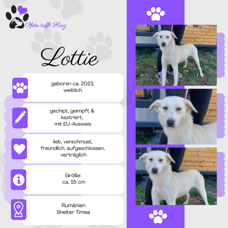 Hallo, ich bin Lottie – eine etwa 2 Jahre alte Hündin, die trotz ihres Starts auf der Straße ihr großes Herz für Menschen bewahrt hat. 🐶✨
